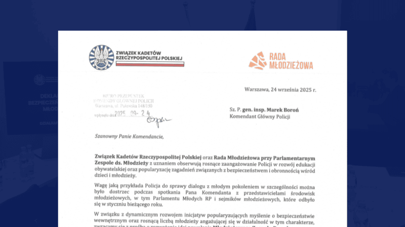 Związek Kadetów Rzeczypospolitej Polskiej oraz Rada Młodzieżowa przy Parlamentarnym Zespole ds. Młodzieży z uznaniem obserwują rosnące zaangażowanie Policji w rozwój edukacji obywatelskiej oraz popularyzację zagadnień związanych z bezpieczeństwem i obronnością wśród dzieci i młodzieży.