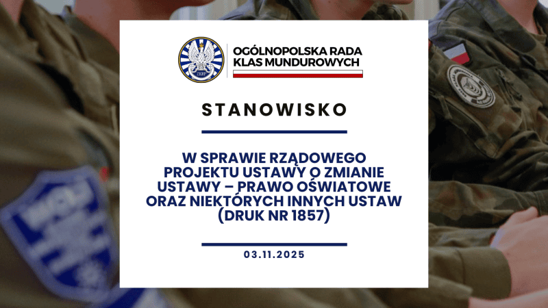 Stanowisko Ogólnopolskiej Rady Klas Mundurowych oraz Zarządu Głównego Związku Kadetów Rzeczypospolitej Polskiej w sprawie Rządowego projektu ustawy o zmianie ustawy – Prawo oświatowe oraz niektórych innych ustaw (druk nr 1857)